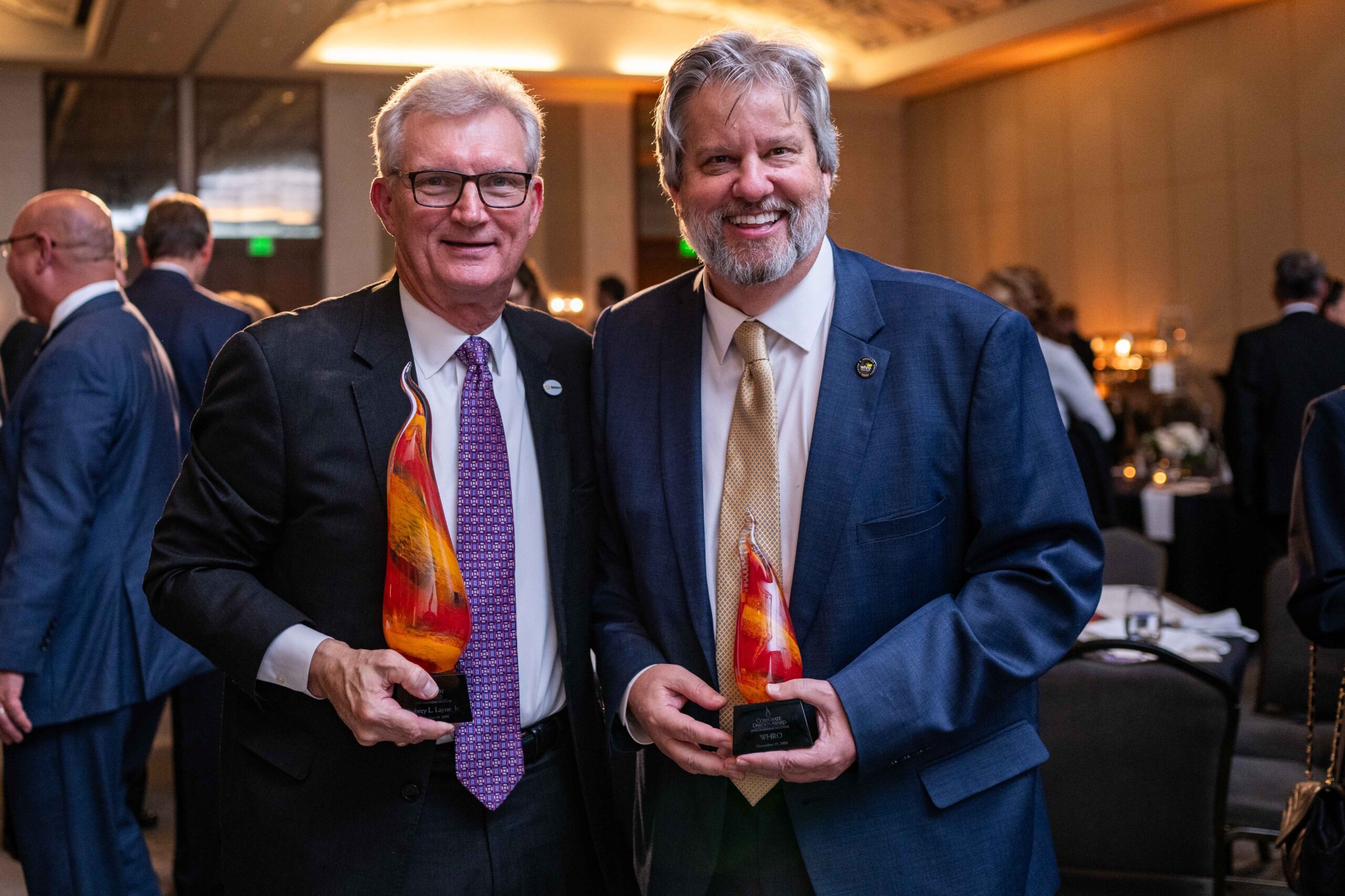 The 2025 Darden Award honorees were recognized on November 19 at Hilton Norfolk The Main. Congratulations to Aubrey L. Layne, Jr. (’13), recipient of the Darden Award for Regional Leadership, and toWHRO Public Media, led by President & CEO Bert Schmidt (’08), recipient of this year’s Corporate Darden Award.